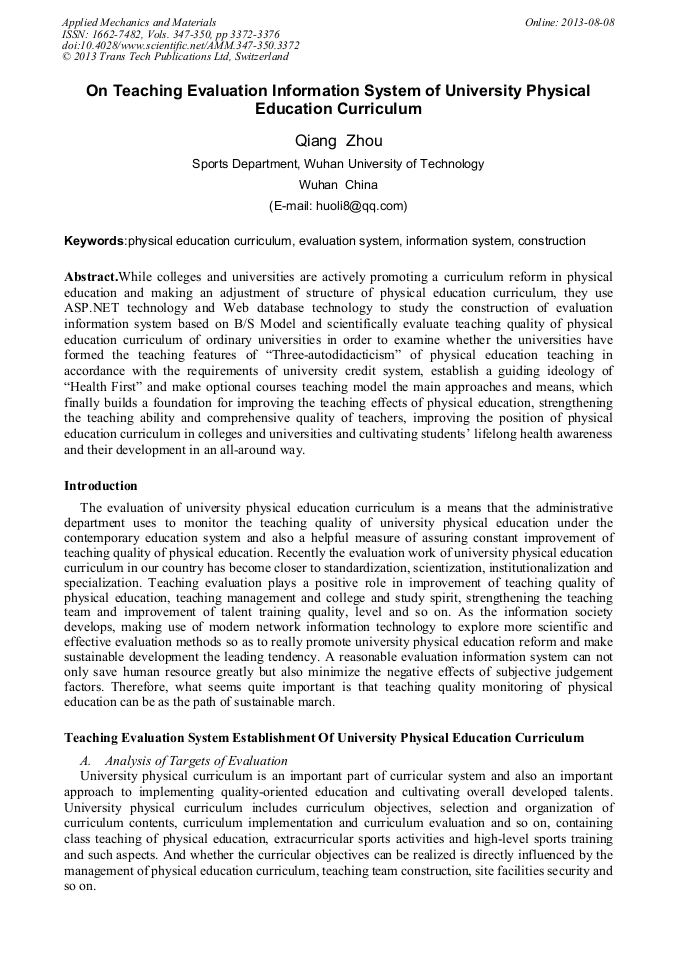 On Teaching Evaluation Information System Of University Physical Education Curriculum Scientific Net from www.scientific.net